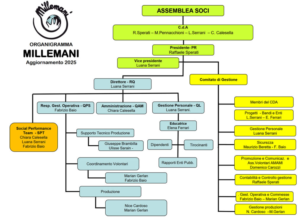 L’organizzazione della Millemani è strutturata per reagire tempestivamente alle esigenze operative che quotidianamente si presentano, tramite il Comitato di Gestione, che formalmente si riunisce ogni settimana.